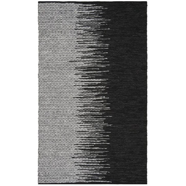 5 x 8 ft. Vintage Leather Hand Woven Rug, Light Grey & Black - Medium Rectangle
