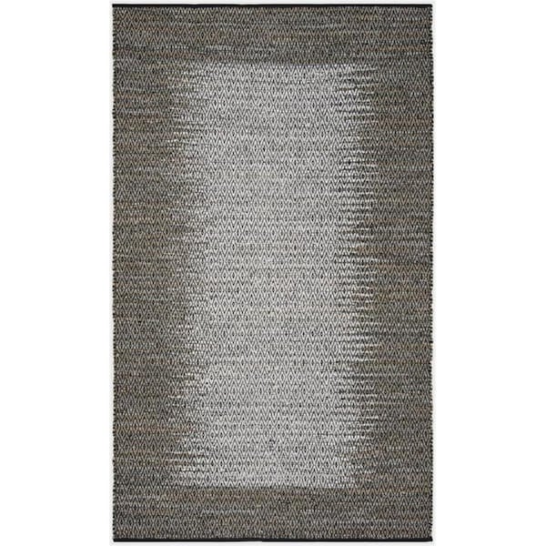 5 x 8 ft. Vintage Leather Hand Woven Rug, Light Grey & Grey - Medium Rectangle