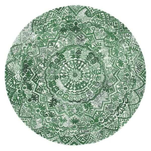 6 x 6 ft. Marquee Bohemian Round Hand Tufted Rug; Green & Ivory (Discontinued)