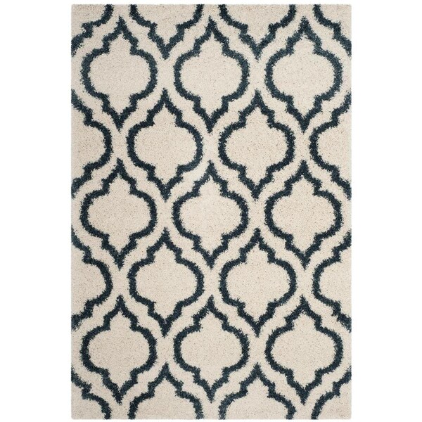 6 x 9 ft. Hudson Shag Power Loomed Rug; Ivory & Slate Blue - Medium Rectangle