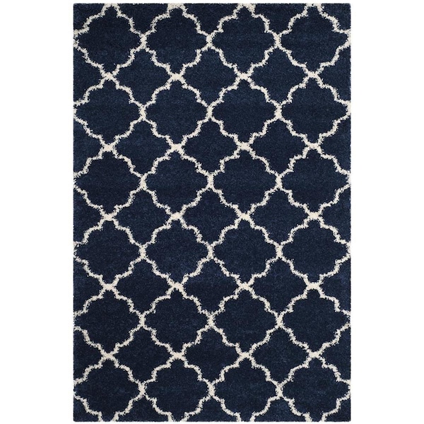 6 x 9 ft. Hudson Shag Power Loomed Rug, Navy & Ivory - Medium Rectangle