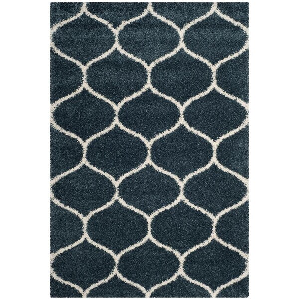 6 x 9 ft. Hudson Shag Power Loomed Rug; Slate Blue & Ivory - Medium Rectangle