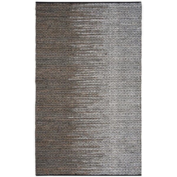 6 x 9 ft. Vintage Leather Hand Woven Rug, Light Grey & Grey - Medium Rectangle