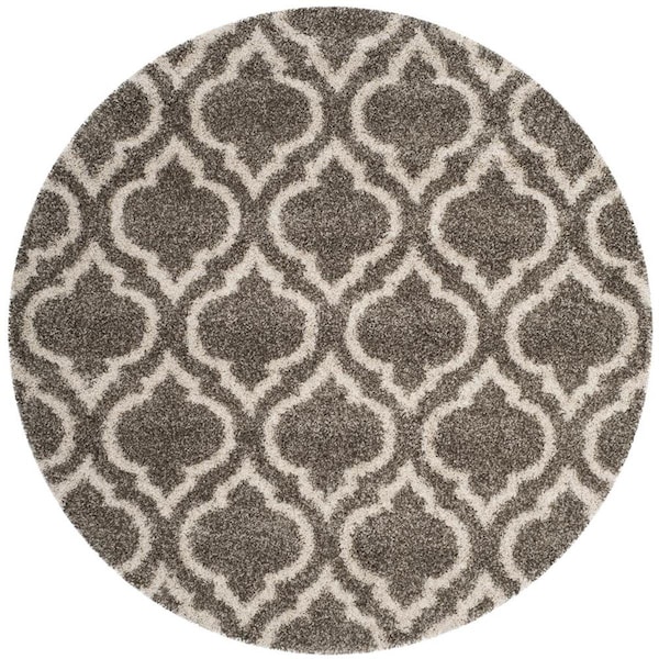 7 x 7 ft. Round Hudson Shag Power Loomed Round Rug, Grey & Ivory (Discontinued)