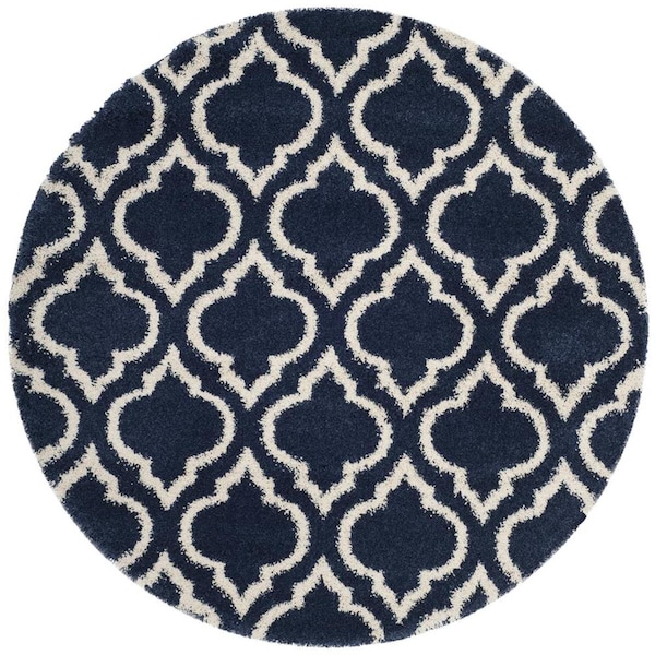 7 x 7 ft. Round Hudson Shag Power Loomed Round Rug, Navy & Ivory (Discontinued)