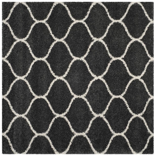 7 x 7 ft. Square Hudson Shag Power Loomed Rug; Dark Grey & Ivory (Discontinued)