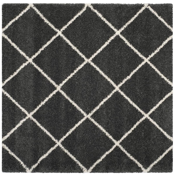 7 x 7 ft. Square Hudson Shag Power Loomed Rug; Dark Grey & Ivory (Discontinued)