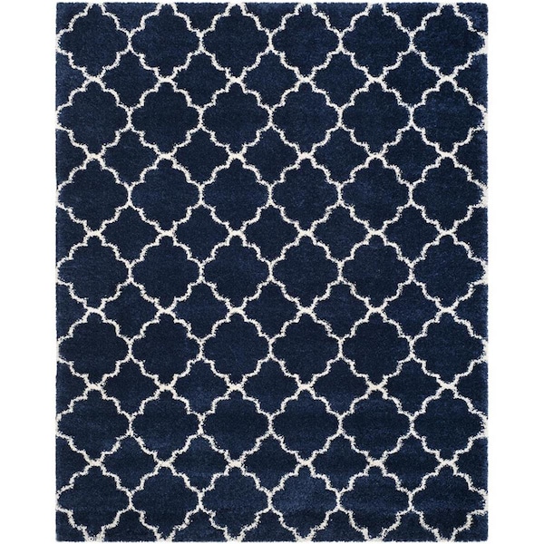8 x 10 ft. Hudson Shag Power Loomed Rug, Navy & Ivory - Large Rectangle (Discontinued)