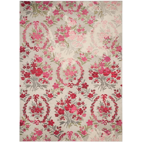8 x 10 ft. Monaco Power Loomed Area Rug, Ivory & Pink - Large Rectangle