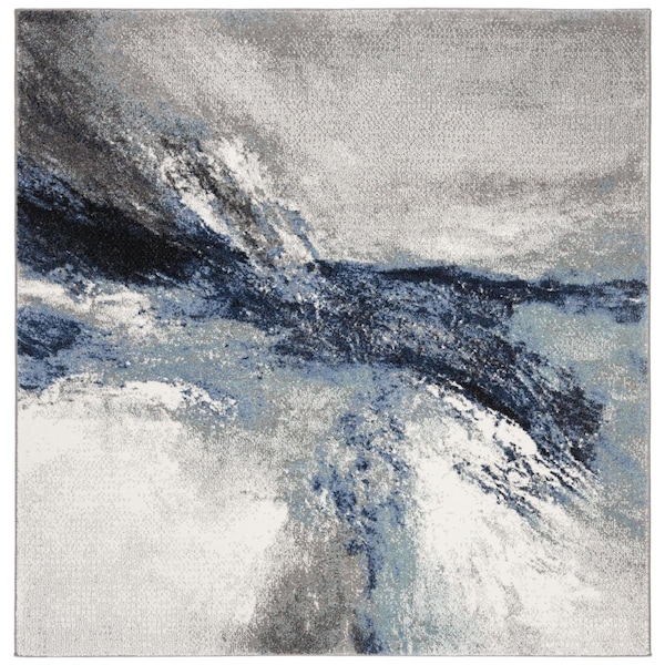 8 x 8 ft. Galaxy Contemporary Square Power Loomed Rug Blue & Grey
