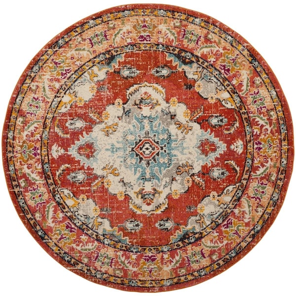 8 x 8 ft. Traditional & Bohemian Monaco Round Rug; Orange & Light Blue (Discontinued)
