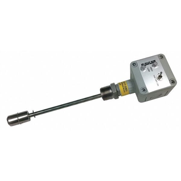 Drum Float Alarm, 55 Gallon Drum High, Vertical Orientation, LED Alarm Type, Input Voltage 9-Volt Battery, Temp. Range -40 to 302 Degrees F, Max. Pressure 250 psi, Enclosure Rating NEMA 4, Enclosure Material Polycarbonate, 316 Stainless Steel, Standards RoHS, CE, UL, Mounting 3/4 In. NPT, Specific Gravity 0.73 (+/- 0.02), Length 8 In., Width 2.5 In., Height 2.125 In.