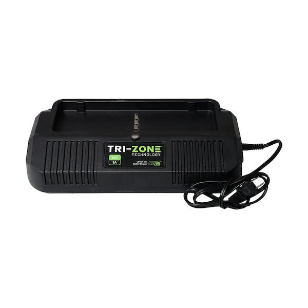 The powerful 42V/5Ah charger used exclusively with FlowZone's Vortex Mist Blower lithium-ion battery packs, 40V/8Ah Part #: FZRAOL and 40V/12Ah Part #: FZRAOM.