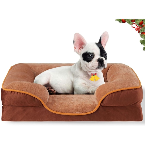 FluffyDream 28'' Medium Orthopedic Egg-Crate Memory Foam Dog Bed Dog Bed, Pet Sofa with Washable Removable Cover, Brown
