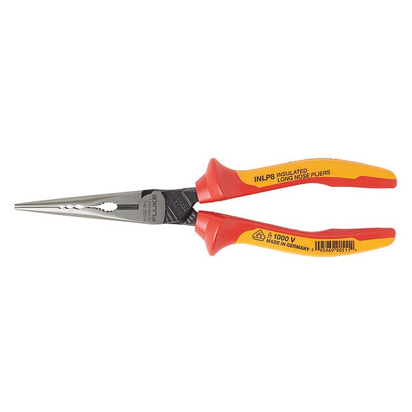 Pliers, Plier Type Needle Nose Pliers, Nose Shape Needle, ESD-Safe No, Overall Length 8 in, Additional Tool Functions Cutter, Insulated Yes, Non-Sparking No, Voltage Rating 1,000 V, Features 1000V Rating, Handle Color Multicolored, Handle Style Ergonomic, Includes Side Cutter