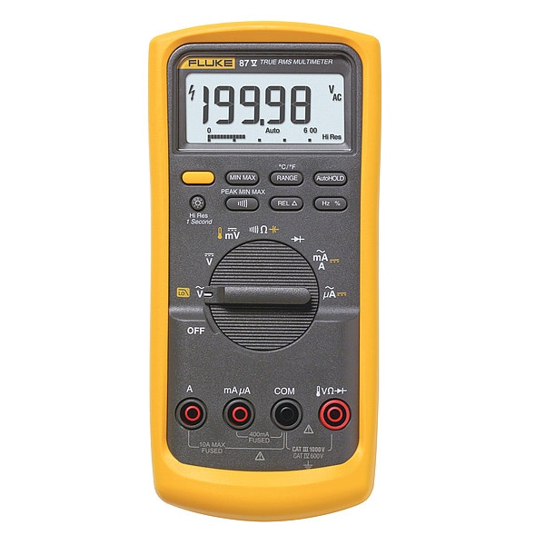 Digital Multimeter, Audible Continuity Yes, Basic AC Voltage Accuracy +/-(0.7 Percent + 2), Basic DC Voltage Accuracy +/-0.05 Percent + 1 Digit, Data Hold Yes, Basic DC Current Accuracy +/-(0.2 Percent + 2), Instrument Safety Rating CAT III 1000V, CAT IV 600V, Maximum AC Voltage Measurement 1,000 V, Maximum DC Voltage Measurement 1,000 V, Instrument Counts 6,000/19,999, Special Features Adjustable Speed Motor Drive Test Function, Maximum AC Current Measurement 10 A