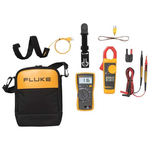 Digital Multimeter Clamp On Kit, Test Instrument Included Clamp Meter, Digital Multimeter, Test Instrument Manufacturer Model Numbers Included Fluke 116/323 HVAC, Includes 80AK-A Thermocouple Adapter, 80BK Integrated Temperature Probe, Soft Carrying Case with Shoulder Strap, Flexible Cuff Pipe Clamp Thermocouple, TL175 Hard Point Test Lead Set, TPAK Toolpak Magnetic Meter Hanging Strap, Digital Multimeter Maximum AC Current Measurement 600 uA