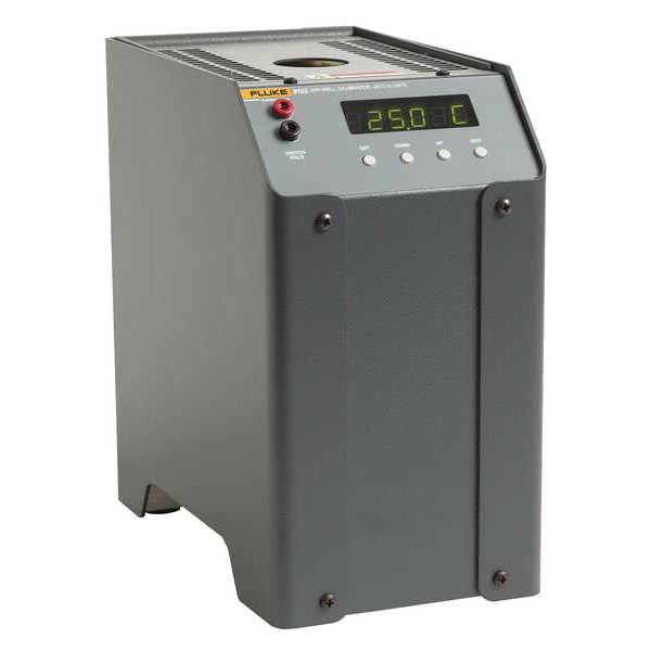 Drywell, Field Dry-Well, Fluke 9103, -13 Degrees to 284 Degrees F/-25 Degrees to 140 Degrees C, Calibration Details Data at -25 Degrees C, 0 Degrees C, 25 Degrees C, 50 Degrees C, 75 Degrees C, 100 Degrees C, and 140 Degrees C, Interface RS-232, Number of Set Points Variable, 10 1/4 in H x 5 39/64 in W x 9 5/8 in D