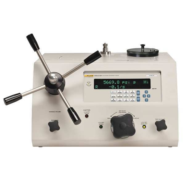 Electronic Deadweight Tester, Pressure Range 0 to 10,000 psi, Accuracy 0.02 Percent Reading, Displayed Pressure Units bar, custom, hPa, inH2O, inHg, kcm2, kPa, mbar, mmH2O, mmHg, mTorr, Pa, psf, psi, Torr, Calibration Certificate ISO, Display 2 x 20 Vacuum Fluorescent Display, Interface RS-232, Powered By 100 to 240V AC, 50/60 Hz, Standards ISO, Includes Power Supply