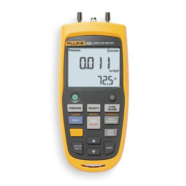 Handheld Digital Manometer, Maximum Pressure 16 in wc, Minimum Pressure -16 in wc, Pressure Accuracy +/-1 Percent, Process Connection Size 1/4 in, Process Connection Type Hose Barb, Includes Batteries Batteries Included, Digital Display Features 5 Digit LCD, NIST Traceable Certificate No, Series Not Applicable, Wireless Connectivity No, Maximum Air Volume 99,999 cu m/hr, 99,999 cfm, 99,999 L/sec, Maximum Air Velocity 16,000 fpm, Pressure Units cfm, fpm, Pascals