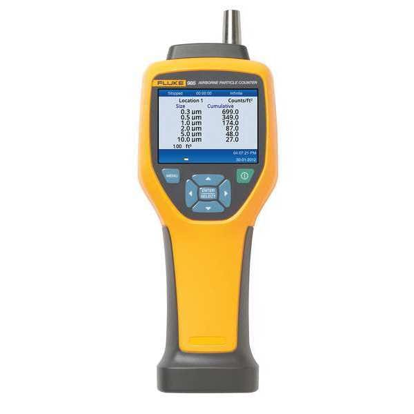 Particle Counter, Calibration Certificate Type NIST, Coincidence Loss 10 Percent at 4,000,000 particles per cu ft, Testing Functions Indoor Air Quality, Number of Channels 6, Number of Records Stored 10,000, Particle Size 0.3 um, 10 um, Count Modes Cumulative, Differential, Digital Display Screen Type LCD, Maximum Relative Humidity Measured 95 Percent, Maximum Sampling Rate 5 hr, Maximum Temperature Measured 104 Degrees F, Minimum Relative Humidity Measured Not Applicable