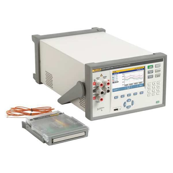 Precision Temperature Scanner, Measures DC Current, DC Voltage, PRTs, Resistance, Thermistors, Thermocouples, Number of Analog Channels 45, Number of Voltage/Resistance Channels 20, Number of Current Channels 5, Scan Rate 10 Channels per sec, Interface Ethernet 10/100 Lan, Temperature Source Control for Automated Temperature Data Collection, USB Device, USB Host, Power Required 36VA Peak/24W Average, Calibration NVLAP Accredited