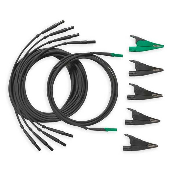 Test Lead Set, Application Manufacturing, Commerical, Electricians, Engineering, CAT Safety Rating CAT III 1000V, CAT IV 600V, Compatible Manufacturer Part Number Fluke 1750, Fluke 1750-TF, Fluke 1750/B, Fluke 434-II, Fluke 435-II, Fluke 437-II, Fluke 438-II, Compatible with Brand Fluke, Compatible with Series Fluke 430 Series, Data Transfer Speed Not Applicable, Includes (5) Alligator Clips (4 Black, 1 Green), (5) Five Test Lead, Product Type Test Leads and Alligator Clips