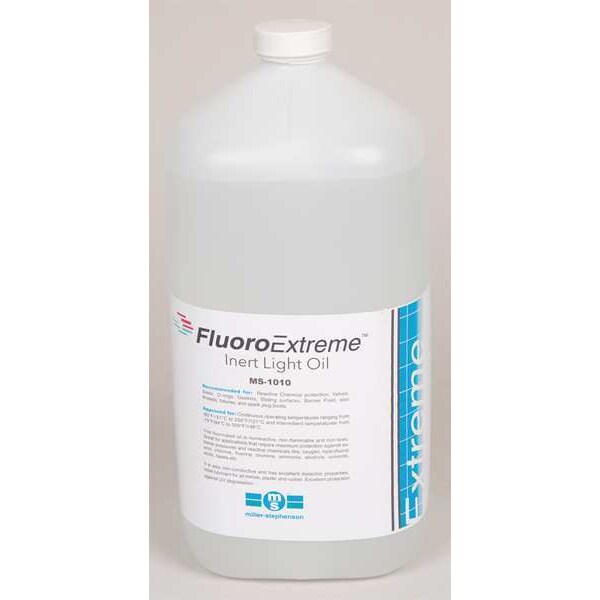 Inert Light Oil, MS-1010 Oil Base, Size 1 qt., Container Type Bottle, SAE Grade 2, ISO Viscosity Grade 7, Viscosity Index 96, Color Clear, Temp. Range -51 Degrees to 177 Degrees F, Pour Point -94 Degrees F, Specific Gravity 1.86 to 1.91 at 75 Degrees F, Four-Ball Wear 0.4mm, Viscosity @ 40C 8 cSt, Viscosity @ 100C 2 cSt, Application For Seals, Valves, Gaskets, Chains and Activators