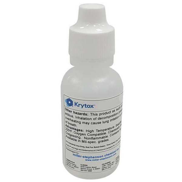 Inert Light Oil, MS-1010 Oil Base, Size 2 oz., Container Type Bottle, SAE Grade 2, ISO Viscosity Grade 7, Viscosity Index 96, Color Clear, Temp. Range -51 Degrees to 177 Degrees F, Pour Point -94 Degrees F, Specific Gravity 1.86 to 1.91 at 75 Degrees F, Four-Ball Wear 0.4mm, Viscosity @ 40C 8 cSt, Viscosity @ 100C 2 cSt, Application For Seals, Valves, Gaskets, Chains and Activators