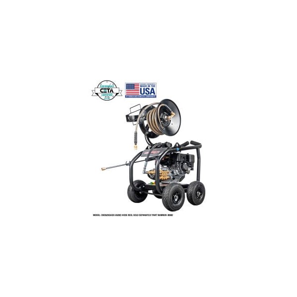 Built for the tough jobs, the sw3625sads, superpro roll cage, will handle all your commercial needs. It features a powerful simpson engine and a reliable aaa pump. The sw3625sads also includes a remote unloader with a bypass hose, which provides industrial durability for extended pump life. features: simpson 208cc engine with a low oil shutdown feature reliable aaa industrial triplex plunger pump direct drive strong steel lifting points for quick crane lifting and reinforced welded design with solid wheel axle for easy forklift transfer high and low-pressure mountable hose reels available (sold separately from the unit.) steel-braided monster hose 5/16" x 25' kink and abrasion resistant hose with quick connect fittings and polyurethane outer jacket four wheels heavy-duty cart design with wheel locking brakes system set on a small steel frame with subframe construction to provide fortified stability 10" premium tires for ease of maneuverability across various terrain 5 quick connect nozzle tips: 0, 15, 25, 40 and soap to use for a variety of cleaning applications fuel tank capacity: 2.6 liters (0.69 gal) battery not included. Requires 12v garden tractor battery type u1 the actual product may vary slightly from product images