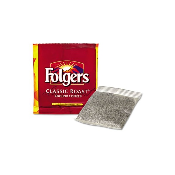 Enjoy a cup of coffee without the hassle of having to prepare it. These packs feature a pre-measured amount of coffee and filter--all in one. All you have to do is place in coffee maker and enjoy--no messy cleanup or measuring mistakes. The coffee is made from 100% mountain grown beans for the rich, smooth Folgers taste. In-RoomFor standard in-room lodging 4-cup brewers. Beverage Type: Coffee; Flavor: Regular; Packing Type: Packet; Capacity Weight: 0.6 oz.