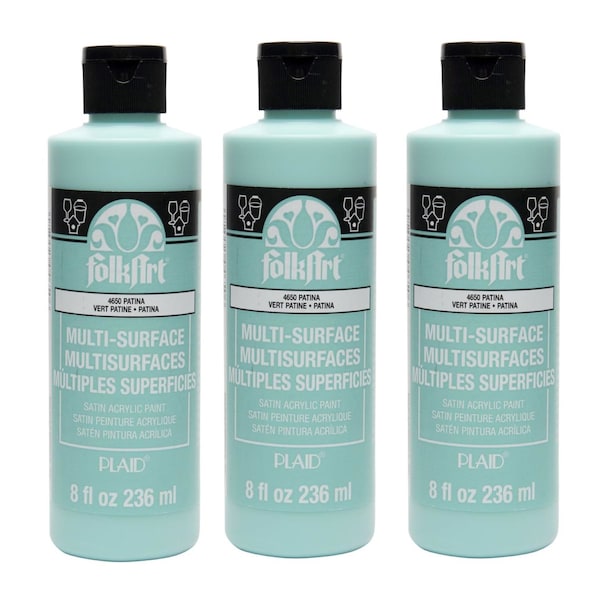 FolkArt Multi-Surface Acrylic Paint provides a wide array of beautiful colors perfect for the crafter and decorative painter. Each of the colors in this line of superior quality acrylic paints has a creamy, smooth consistency with excellent coverage. Whether you are a novice or expert crafter, you will love the versatility of this acrylic paint as part of your arts and crafts supplies. Use this multi-surface paint on a variety of surfaces such as wood, terra cotta, canvas, glass, fabric, ceramics and more. With this multi-surface acrylic paint, you can do everything from intricate detail work to stenciling for a fresh look to all your DIY projects. This formula is also great for indoor and outdoor projects as well as top-shelf dishwasher safe when cured. Make FolkArt Multi-Surface Acrylic Paint a must-have addition to your art supplies. Sold as a pack of 3-bottles.