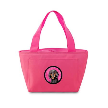 15 x 7 in. Dachshund Zippered Insulated School Washable and Stylish Lunch Bag Cooler- Pink