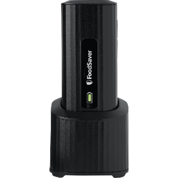 The FoodSaver Handheld Vacuum Sealer lets you enjoy all the benefits of vacuum sealing while taking up minimal counterspace. Compatible with all FoodSaver vacuum zipper bags and FoodSaver Fresh vacuum seal containers the Handheld Sealer features a strong innovative motor that quietly seals up to 60 FoodSaver quart bags with just one full 24-hour charge. 4.75 In. total height in base. Plus the streamlined charging base also keeps your countertops neat thanks to the built-in cord management system.