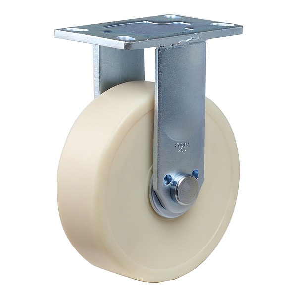 Rigid, Plate Caster, Load Rating 2,420 lb, Wheel Dia. 200 mm, Wheel Width 64 mm, Wheel/Tread Material Nylon, Number of Wheels 1, Caster Brake Type No Brake