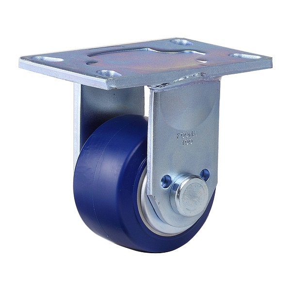 Rigid, Plate Caster, Load Rating 1,433 lb, Wheel Dia. 100 mm, Wheel Width 67 mm, Wheel/Tread Material Polyurethane, Wheel Core Material Aluminum, Number of Wheels 1, Caster Brake Type No Brake