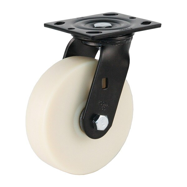 Swivel, Plate Caster, Load Rating 992 lb, Wheel Dia. 150 mm, Wheel Width 40 mm, Wheel/Tread Material Nylon, Number of Wheels 1, Caster Brake Type No Brake