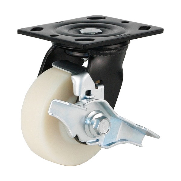 Swivel, Plate Caster, Load Rating 771 lb, Wheel Dia. 100 mm, Wheel Width 35 mm, Wheel/Tread Material Polyurethane, Wheel Core Material Aluminum, Number of Wheels 1, Caster Brake Type Swivel With Brake