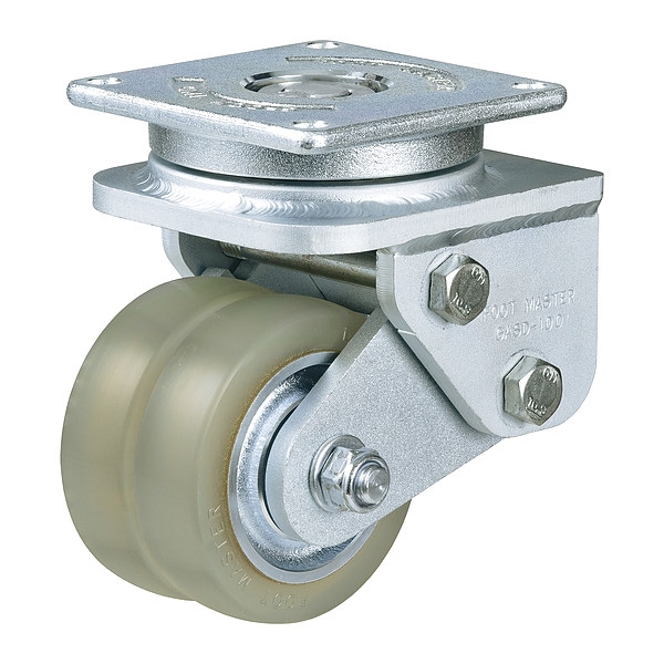 Swivel, Plate Caster, Load Rating 683 lb, Wheel Dia. 100 mm, Wheel Width 30 mm, Wheel/Tread Material Polyurethane, Wheel Core Material Steel, Number of Wheels 2, Caster Brake Type No Brake