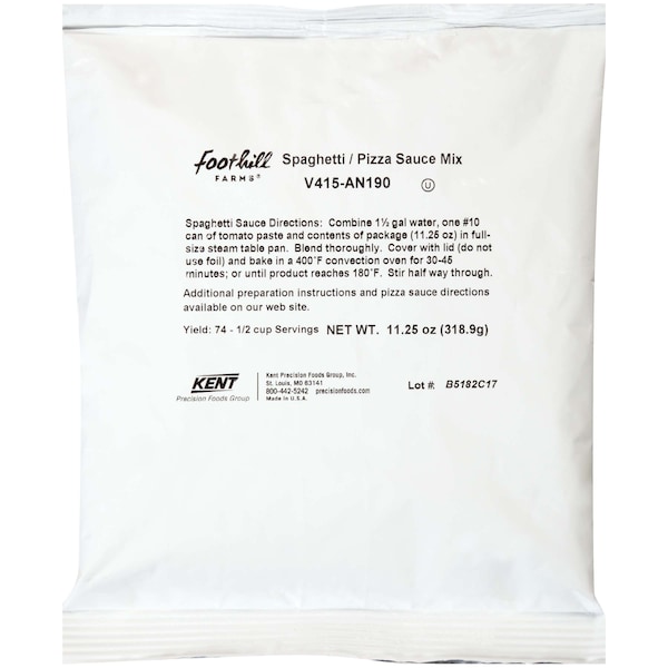Foothill Farms 30% Less Sodium Spaghetti And Pizza Sauce Mix 11.25 oz. Packet