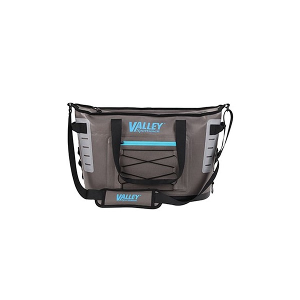 Valley Sportsman, 30 Can Soft Tote Cooler Bag, Gray Body With Teal Accents, 840D TPU, 420D TPU PE Foam, Withstand The Hazards Of The Wild Keep Your Contents Nice Frosty, Designed Body For Easier Loading Unloading, Dry Material, Closed Cell Insulation, Heavy Duty Nylon Shell, Waterproof Zipper, AntiMicrobial Liner, Easy Access Lid, Light Weight Durable, No Sweat Exterior
