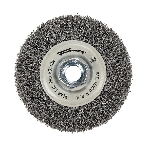 Command PRO products for when the job demands more! Superior products for less down time, longer use and overall better quality finishes. Designed for easy access into narrow holes and confined areas. Ideal for removing rust, scale and paint in hard to reach areas on metal surfaces. Scrubs surfaces clean!Product Specifications:* Style: Crimped* Diameter: 4in 101.6 millimeters* Arbor: 5/8in-11* Wire Size: .014in 0.356 millimeters* Material: Steel* Maximum Revolutions per Minute RPM: 15,000* Tool Type: Angle grinder