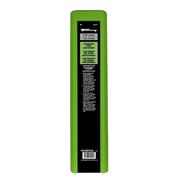 E316L-16 stainless steel electrodes are used for molybdenum bearing stainless steels with 1.5 to 3.0% Mo. Primarily used for resistance to pitting, many acids and general corrosion. PRODUCT SPECIFICATIONS* Diameter: 3/32in * Size: 5 lbs. * Maintenance quality smooth running molybdenum bearing 316L-16 electrode * Excellent all position capabilities * Extra low carbon content to resist pitting * Suitable for titanium and niobium stabilized versions of 316L stainless