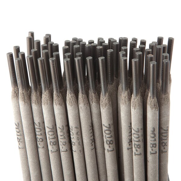 E7018 mild steel low hydrogen welding electrodes easily produce quality results on smaller amperage DC, or higher amperage AC welders. Use for field erections, steel structures, frames, trailer hitches and chassis. Product Specifications:* Recommended polarity DCEP reverse or AC* Diameter: 1/8in 3.18mm * Weight: 5 lbs. 2.26 kg* Tensile strength: 84,000 PSI * Amperage: 100-140* Not recommended for use with low open circuit-voltage OCV power sourcesProduct Features: OUT OF POSITION WELDING* This welding rod is suitable for all positions on hardenable steels where no preheat is used, and on cold rolled steels normally exhibiting excessive porosity when welded with conventional rod.LOW HYDROGEN* The low hydrogen content of these electrodes reduces cracking and peeling of the weld material.MULTIFUNCTIONAL * These electrodes are also ideal for tack welding, and for projects that involve difficult steels to weld thick sections, restrained joints with cracking issues, etc..