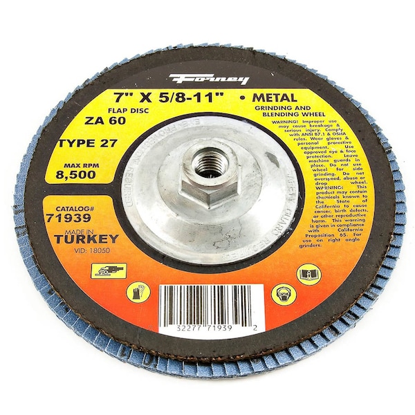 Flap Disc, Type 27, 7 in x 5/8 in-11, ZA60