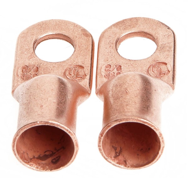 #2/0 Cable x 3/8" Stud Premium Copper Cable Lug (Carded), 2-Pack. Carefully manufactured for sound, solid connections and trouble-free service. Easily crimped or swaged. Made from electrolytic copper rated for 100% conductivity. Carded 2-pack. Bulk 5-pack is Forney® 57653.