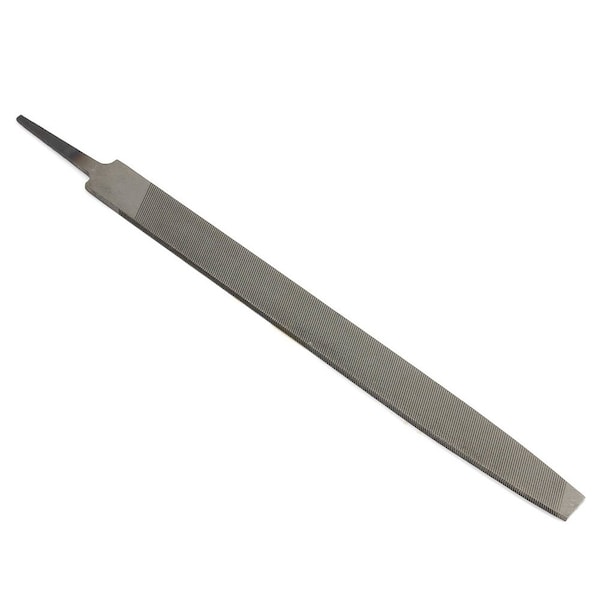 Hand File, 12in Mill Bastard Machinist File, Standard American pattern. Flat mill single cut, coarse bastard cut file for use with general stock removal of steel and other iron-based metals.