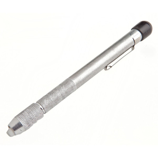 1/4" Round Aluminum Soapstone Pencil Holder, constructed with an inner sleeve collet to separate the soapstone for maximum grip and protection. Slim line brass holder with a convenient deluxe pocket clip. Easily adjustable.