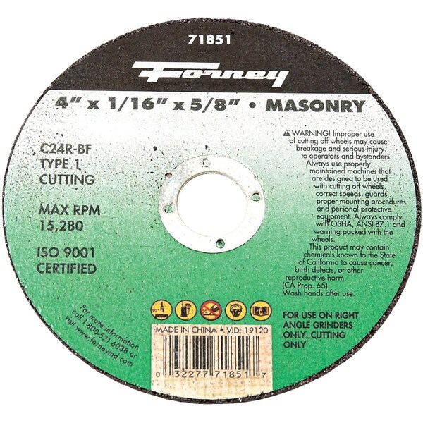Type 1 4'' x 1/16'' x 5/8'' Masonry Cut-Off Wheel