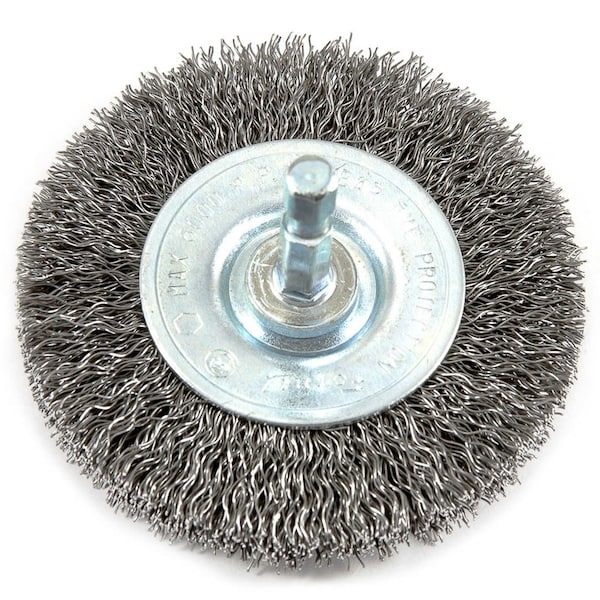 This Forney stem mounted 3 in coarse wire wheel brush with a 1/4 in hex shank offers some serious cleaning power! Itfts designed for easy access into narrow holes and confined areas. This wire wheel brush features crimped style wire which is ideal for light to medium duty applications. It removes rust, scale, paint, and weld spatter in hard to reach areas. Designed to be used with common 1/4 in diameter electric power drills or pneumatic air drills.Product Specifications:* Type: Power brush* Diameter:3 in* Wire Style: Crimped* Wire Material: High carbon steel* Coarse* Shank: 1/4 in 6.35 millimeters* Hex Wire Size: .012 in .304 millimeters* Maximum Revolutions Per Minute RPM: 6,000* Tool Type: For use with common 1/4 in diameter electric power drills or pneumatic air drills